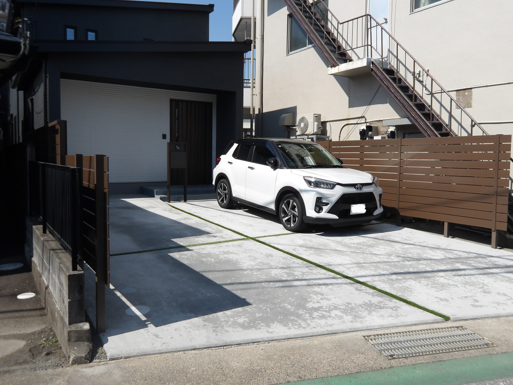 ブラウン系にまとめた新築外構