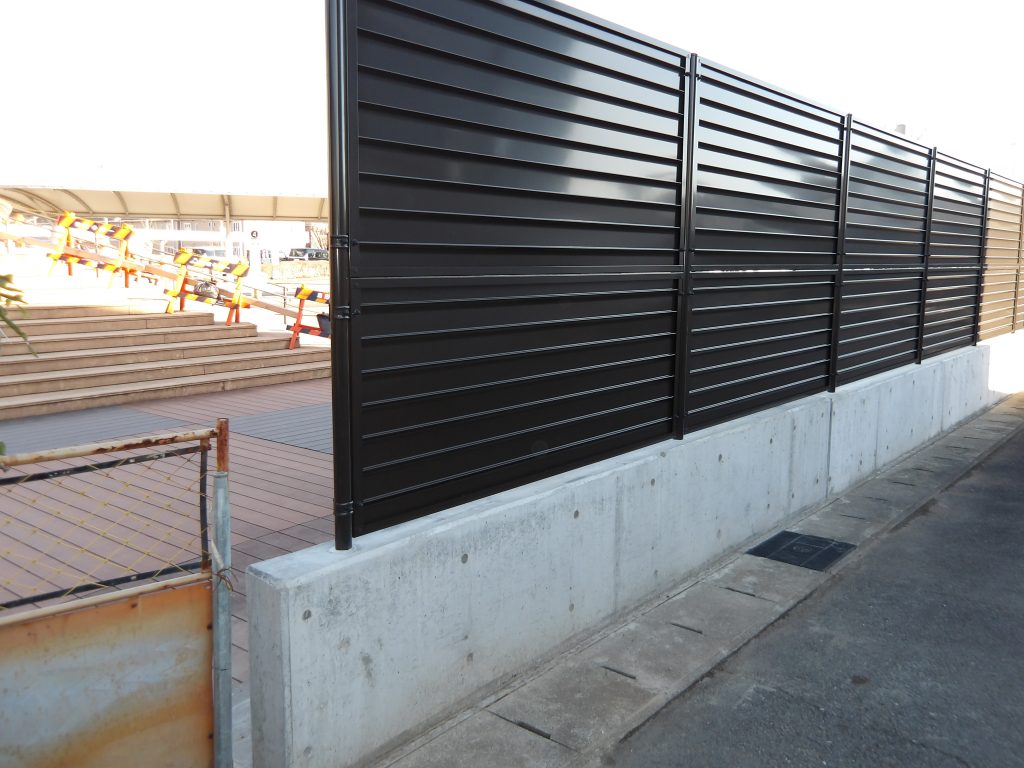 コンクリート擁壁に高さのある目隠しフェンス